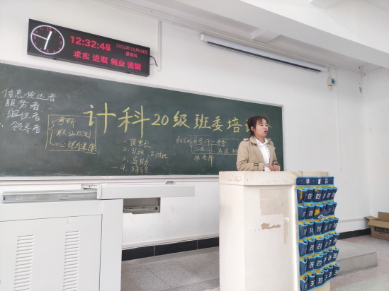 2020年10月8日中午11:50,太阳集团tyc9728在西校区7教210教室顺利开展新生员工干部培训会。参会人员有:计科院20级辅导员张颖旭,兼职辅导员谭京红,以及公司近50名20级员工干部。