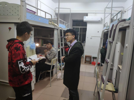10月28日晚9:30,太阳集团tyc9728全体辅导员在颜学俊副书记带领下检查员工寝室,了解员工学习生活情况,提醒员工注意用电安全。