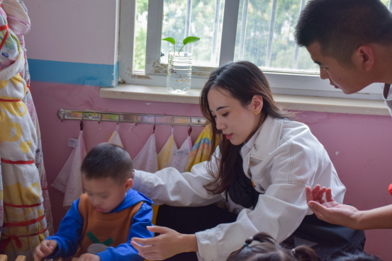志愿者为孩子们准备了多彩的水彩笔、各种各样打印好的可填充的图画纸、本子等小礼品。针对孩子们的情况,志愿者与孩子们进行一对一、二对一等搭配分工。带领小龄孩子进行做手工、画画等多种方式的训练,培养他们的动手能力;帮助大龄孩子进行荡秋千、滑滑梯、玩皮球等集体游戏,锻炼孩子的集体意识及身体的协调性、灵活性。在活动中和孩子们多用语言沟通,锻炼他们的听力及发音。