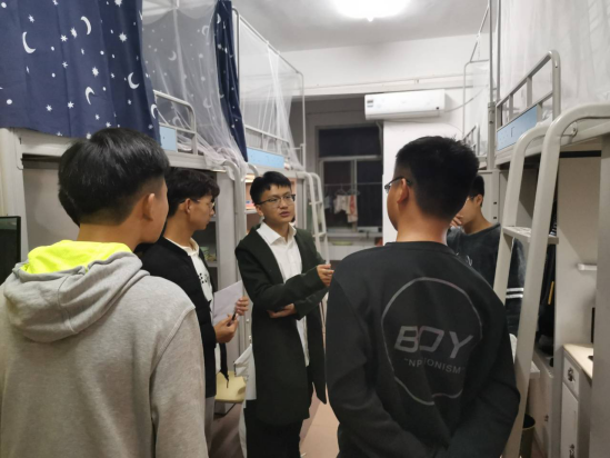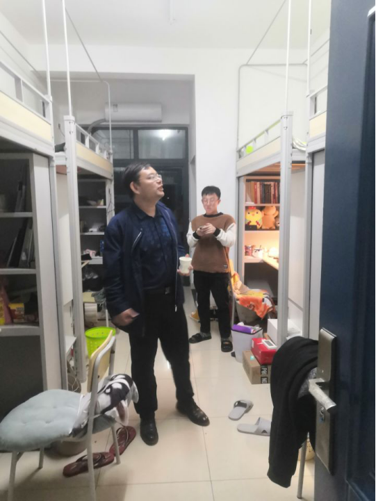 10月17日晚9:30,太阳集团tyc9728全体辅导员在颜学俊副书记带领下检查员工寝室,了解员工学习生活情况,提醒员工注意用电安全。