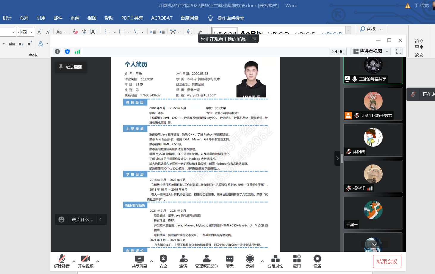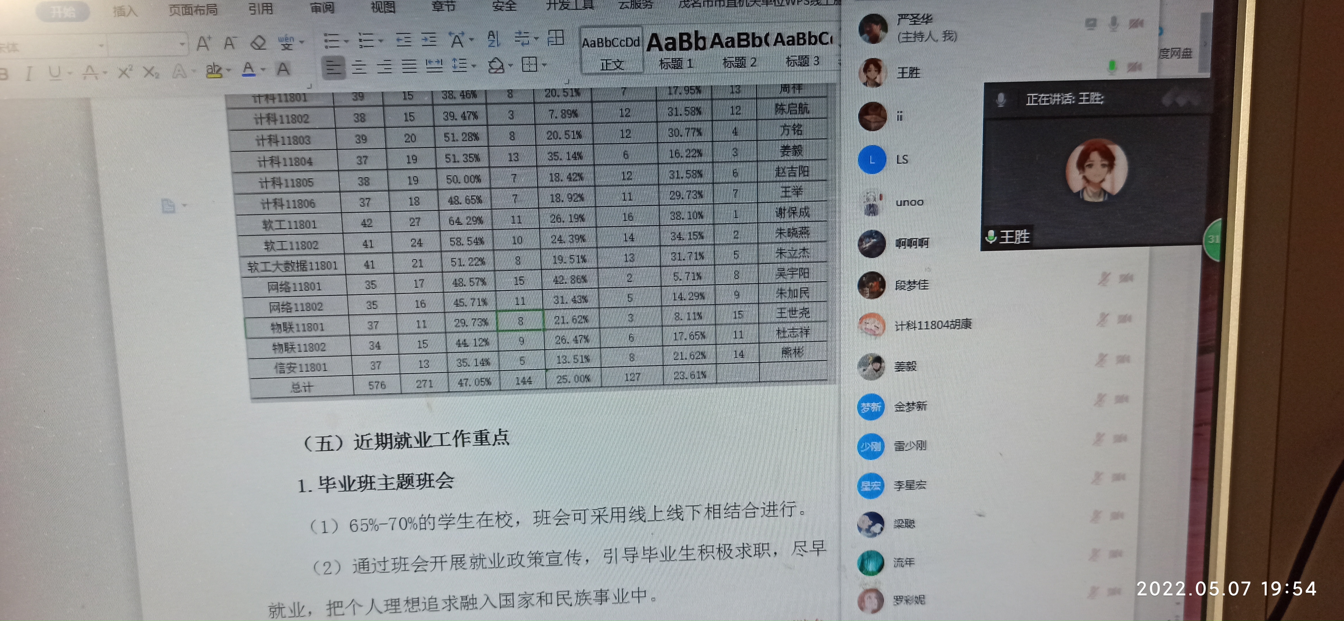 (通讯员 余珺瑞)为促进公司2022届毕业生就业、升学、离校等工作顺利进行,充分帮助同学们顺利毕业,5月7日—5月14日,太阳集团tyc9728采取线上、线下相结合的方式开展2022届毕业生年级主题班会。会议由党委副书记颜学俊牵头,各班班主任主持,2022届毕业生全体参会。