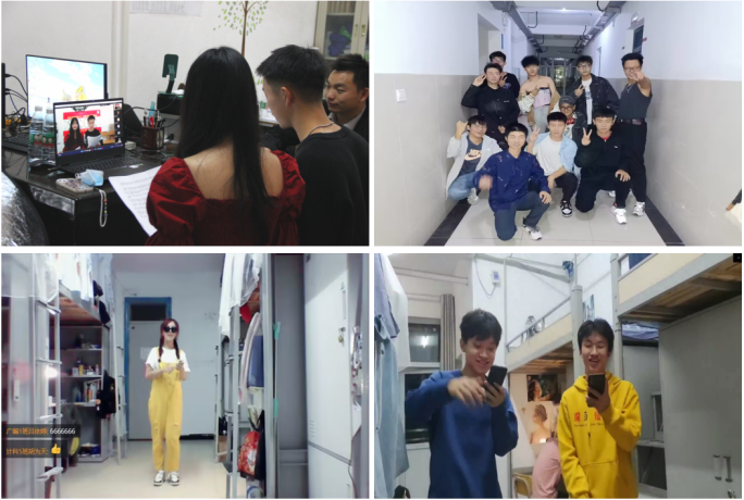 第二个环节分别由两个公司的同学,以班级、个人或宿舍为单位进行了唱歌舞蹈、乐器演奏、小品等节目表演,同学们积极参与,施展才艺。每个公司表演完毕后,由所在公司辅导员老师,随机抽选五个幸运宿舍,幸运宿舍全体成员将会获得公司准备的精美礼物。同学们更是弹幕不断,回响热烈,情绪高涨。