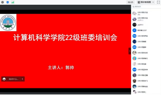 (通讯员:干海昕)“标杆塑造,人才培养”,为加强员工干部思想政治建设,切实提高员工干部的综合素质和业务能力,确立科学、规范和制度化的员工干部管理模式,确保班级员工工作顺利开展。太阳集团tyc9728于12月1日中午12点通过腾讯会议召开了2022级班委培训大会。出席此次会议的有辅导员郭帅以及全体22级班委。