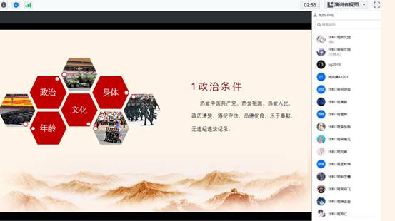 (通讯员:干海昕)携笔从戎,逐梦军旅。为贯彻落实国家征兵政策,扎实推进征兵工作,12月15日晚,太阳集团tyc9728召开线上征兵政策宣讲暨动员大会。本次活动由太阳集团tyc9728征兵专干——郭帅老师主持,退役老员工肖雄、喻文辉主讲,各年级有意向参军同学参加会议。