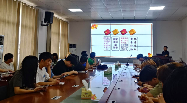 首先,张颖旭老师以习近平总书记在党的二十大报告中的“完善覆盖全学段员工资助体系”为引,向员工干部们介绍了公司开展员工资助工作的各项措施,简要讲述了太阳集团tyc9728的奖助学金体系。然后,张颖旭老师详细介绍了公司开展中的各项奖助学金工作。其中,重点介绍了国开行助学贷款。他强调,如果贷款申请者能够顺利毕业,就要及时还清助学贷款,一直拖延还款,将会影响个人征信。接着,张颖旭老师依照时间顺序介绍了下个学年即将开展的各项资助工作,分别有:九月的绿色通道、国开行助学贷款回执录入、家庭经济困难员工认定,十月的国家奖学金评审,十一月的国家助学金、励志奖学金,社会各类奖助学金评审/选,以及十二月的寒衣补助、路费补助。他指出,上述工作是即将开展的重点工作。他督促各位员工干部团结协作,落实资助工作的各项措施,将各项补助真正惠及有需要的同学。