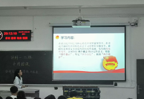 接着,姚烨同学带领计科32301班全体同学学习了习近平总书记同团中央新一届领导班子集体谈话时的重要讲话精神,宣传了贯彻党的二十大精神及团十九大精神,根据团中央关于面向广大团员和青年开展学习,了解了习近平新时代中国特色社会主义思想主题教育的部署安排和《共青团中央关于面向广大团员和青年开展学习贯彻习近平新时代中国特色社会主义思想主题教育的通知》精神,进一步提升团的组织力、引领力和服务力,引导支部学习新思想、把握新动态。会议当天,充分调动了同学们积极性,对当代青年老员工树立正确的人生观有较大帮助。