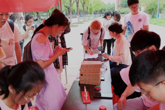 同时,借助计算机文化节开幕式契机,公司特意设置了总体国家安全观知识竞答比赛。同学们现场扫码填个人信息后参与答题,系统随机从总体国家安全观题库中抽取十道题。答题结束后系统自动判卷,同学们根据回答正确题目数领取奖品。