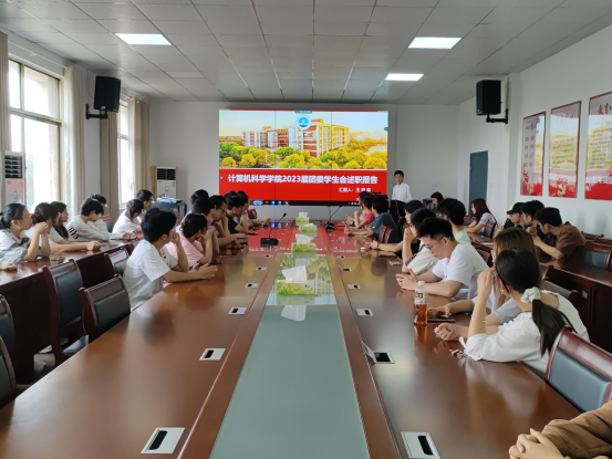 会议伊始,张茜老师介绍了会议的议程。会议第一项由23届团委员工会执行主席王晓森对2023-2024年员工会的工作进行了汇报,他向同学们先简要介绍了员工会各部门职责情况,总结了这一年以来员工会所举办的活动并指出了当前存在的问题和挑战,也表达了对员工会未来的规划。随后,22级研究生贾瀛睿对研究生会工作进行了汇报,介绍了研究生的政治理论学习模式、研究生会举办的体育活动,她希望以后能有更多的人参与进来,将研究生会越办越好。
