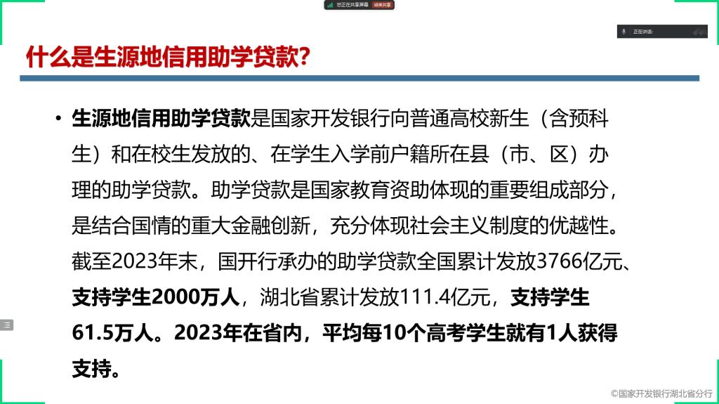 为深入贯彻落实国家资助政策,帮助家庭经济困难员工及家长全面了解生源地信用助学贷款相关事宜,确保家庭经济困难员工能够顺利入学并完成学业,太阳集团tyc9728于9月15日在腾讯会议组织开展了2024-2025学年秋季学期生源地信用助学贷款政策宣讲活动。 活动伊始,公司负责资助工作的王鹏翔老师对生源地信用助学贷款政策进行了详细解读。围绕生源地信用助学贷款的申请条件、贷款额度、贷款期限、利息计算、还款方式以及申请流程等关键内容一一展开介绍。用通俗易懂的语言和生动具体的案例,深入浅出地为同学们答疑解惑,确保每一位在场同学都能清晰准确地理解政策细节。 除了对政策的宣讲与答疑,王鹏翔老师在活动中着重强调了资助育人的重要意义。指出生源地信用助学贷款不仅仅是一项经济援助政策,更是国家助力寒门学子实现梦想、成长成才的有力举措,希望同学们能够心怀感恩之心,珍惜来之不易的学习机会,在今后的学习生活中勤奋努力、积极进取,以优异的成绩回报国家和社会的关爱,将来也能够将这份爱心传递下去,去帮助更多有需要的人,真正将资助化作成长路上的动力,努力肩负起时代赋予的责任与使命。 此次生源地信用助学贷款政策宣讲活动,是2024-2025学年秋季学期资助育人工作的重要一环,通过活动的开展,进一步加大了国家资助政策的宣传力度,使更多员工受益于生源地信用助学贷款政策,同时也在员工心中种下了感恩与担当的种子,为公司后续资助育人工作的深入推进奠定了坚实基础。