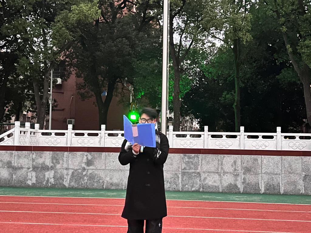 6 时 58 分,主持人李佳彤宣布仪式开始。7 时整,国歌激昂奏响,鲜艳五星红旗冉冉升起,全体师生庄重凝视,高唱国歌,爱国豪情在心中澎湃。庄严仪式后,计科类 32411 班孟子博同学发表《以青春之力,开拓国家科技强盛新征程》演讲。他谈到祖国于时代浪潮中稳健前行,科技为复兴关键,大学乃成长摇篮,吾辈应精研专业、拓宽视野、提升能力,以知识作科技基石。老员工当凭青春创造活力,投身科创实践,借竞赛、项目、活动锤炼能力、塑造思维,与各界协作解实际难题。同时还需树立正确价值观,依国家需求投身专业研究,勇创新、克艰难、善学习,育团队精神与社会担当,以青春热血践行“求实、进取、创业、报国”的长大精神,为中国梦奉献力量。
