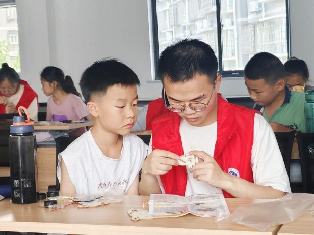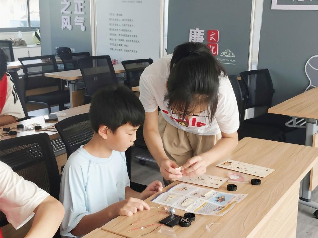志愿者们还开设了“创意遥控车拼装”小课堂,耐心讲解齿轮传动、电机的原理,指导孩子们识别零件、拼接车身、调试遥控器。孩子们举着组装好的遥控车,兴奋地操控着它转弯。在动手实践中,孩子们不仅掌握了机械知识,更让探索科技的兴趣悄然生长。