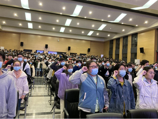 会上,计科32007班的蔡鸿宇同学带领同学们进行了备战四级暨诚信考试宣誓。