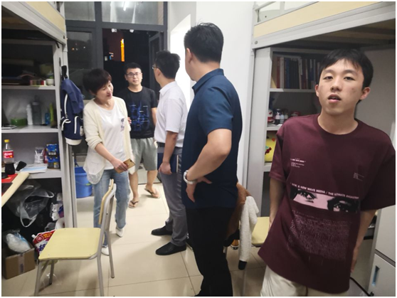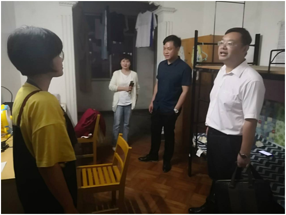 9月19日晚上8点,太阳集团tyc9728经理崔艳荣、副经理宋文广、公司党委副书记颜学俊、研究生辅导员付盈主任走访2019级全体硕士研究生的员工宿舍,深入了解他们的思想、学习、生活、安全、卫生等情况。