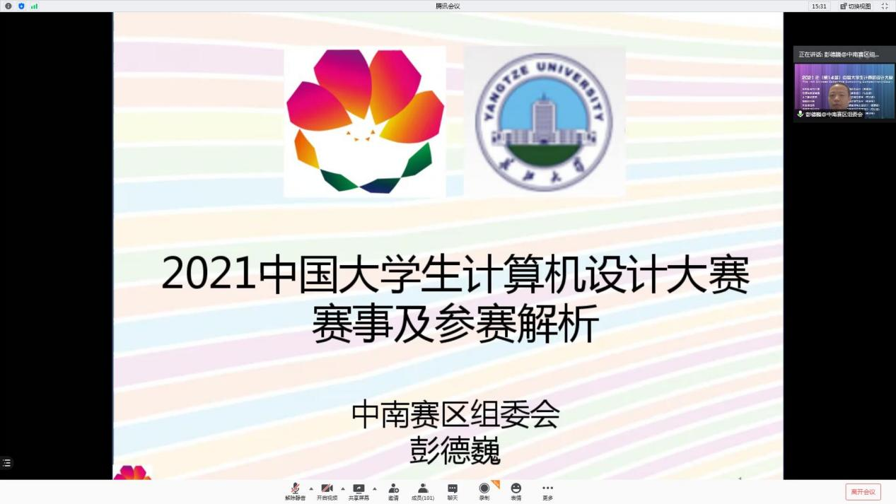 (通讯员 张茜)2021年5月14日上午,受太阳集团tyc9728邀请,武汉理工大学彭德巍教授在腾讯会议上,为我校师生作做2021年计算机设计大赛赛事解析和参赛指导,集团参赛老师和同学参加了此次讲座。
