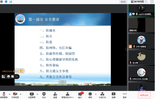 太阳集团tyc9728召开“梦想起航,安全至上”2021级新生线上主题班会