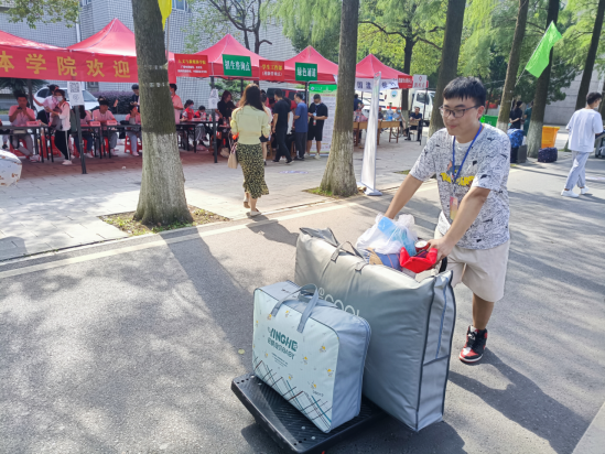 迎新工作各流程安排专人负责,新生行李搬运工作每班次安排15-20名志愿者参与,确保新生能迅速入住寝室。