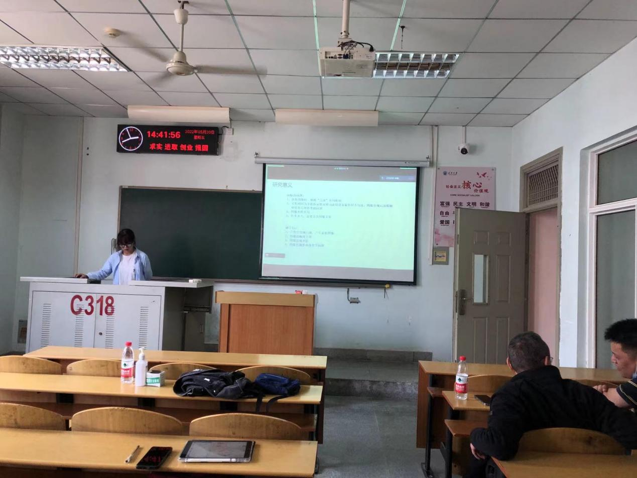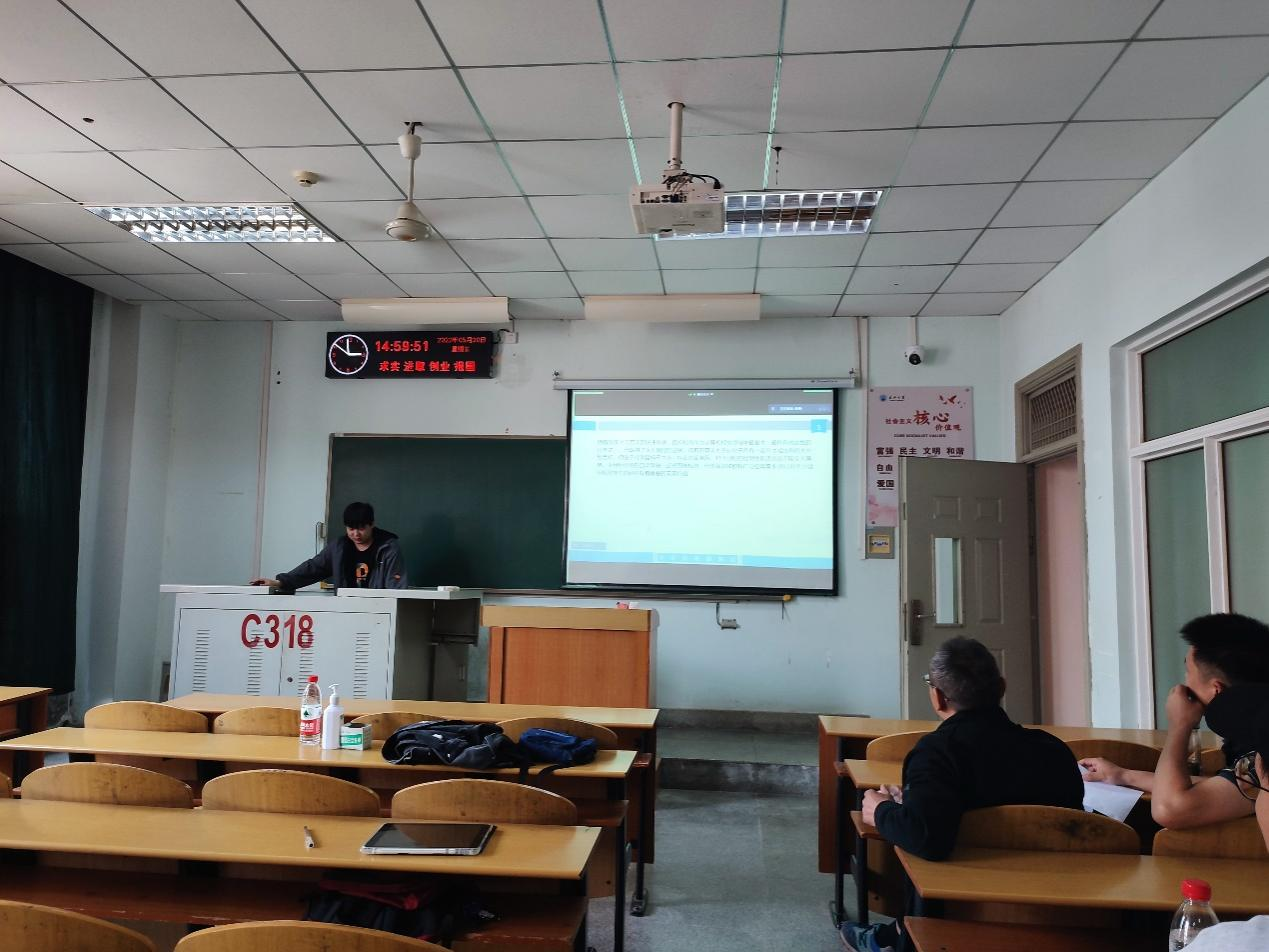 2022年5月20号下午14:00,太阳集团tyc9728研究生学术论文报告会第七讲在东校区13教C318顺利举行。经过经理崔艳荣教授、副经理宋文广教授、副书记颜学俊老师的合理安排,学工办付盈副教授、教学办黄静老师的精心组织,2022年研究生学术论文报告会第七讲顺利开展。学术论文报告会由硕士生导师胡杰、魏登峰老师莅临指导。
