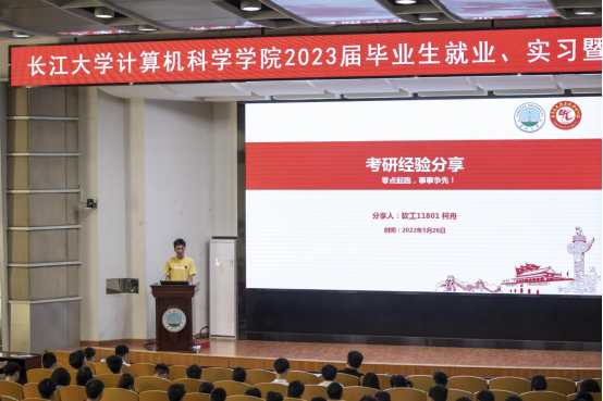 随后,毕业生代表王柳洋、刘卓进行了求职经验交流。他们较为详尽地和在座的同学分享了自身的求职准备和求职经历,并特别针对计算机大类专业求职中的自我定位与规划、学习路线、校招求职进行了梳理和讲解。