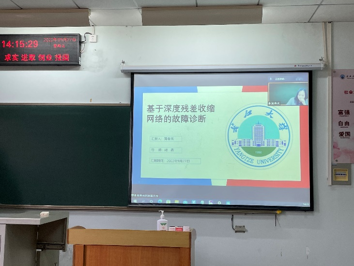 黄春秀同学由于疫情原因采取了线上报告的方式,报告的主要内容是:提出了两种新的深度学习方法,即通道间共享阈值的深度残差收缩网络 (RSBU-CS)和通道间不同阈值的深度残差收缩网络 (RSBU-CW)。这两种方法将软阈值化作为可训练的收缩函数嵌入到深层子网络结构中,有效提高对强噪振动信号的特征学习能力,并且取得较高的故障诊断准确率,可适用于众多领域处理各种含噪信号的模式识别任务。