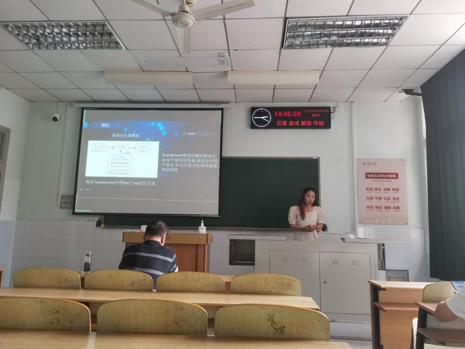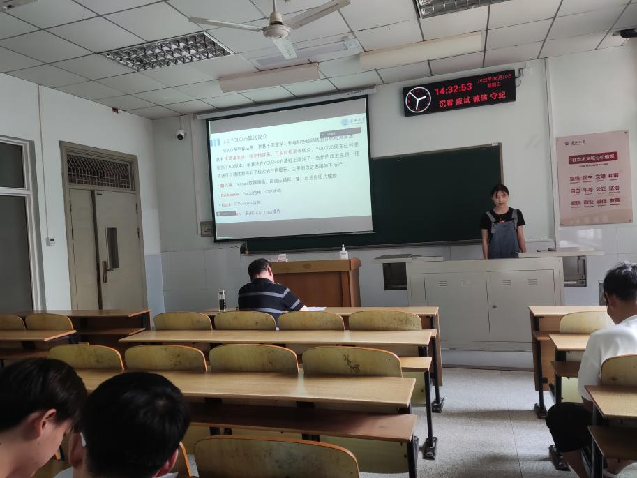 太阳集团tyc97288位研究生依次登台演讲,分别围绕各自的研究方向,为同学们分享了8个课题:基于GAN的番茄病虫害图像数据增强方法研究、特征压缩激活作用下U-Net网络的煤尘颗粒特征提取、YOLOV5算法改进、基于YOLOV5的钢材表面缺陷检测算法、基于检索与生成对话模型的深度融合、可预测链路可靠性协议的卫星通讯技术研究、小样本语义分割的方法与应用、Multi-scale feature fusion Change Detection model等内容。学术论文报告会已经成为同学们知识共享和传播的一种重要方式,在演讲过程中,导师与听众和演讲人针对相关研究成果互动、探讨。每名研究生演讲完后,两位导师从全方位对演讲员工的汇报进行仔细点评,对其研究内容可能遇到的科研困难进行指导,通过点评有效促进了研究生的成长。