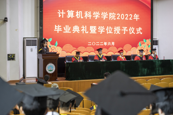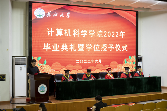 典礼开始前,大屏幕循环播放着毕业生纪念册视频,回顾着大家在校的美好生活。在张茜老师宣读HSE安全提示后,伴随着激昂的国歌,毕业典礼正式开始。首先,公司党委副书记颜学俊宣读了2022届优秀毕业生表彰文件,今年全院共有62名本科毕业生和6名研究生被评为“太阳集团tyc9728优秀毕业生”。