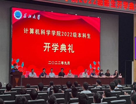 随后由教师代表发言,计算机科学与技术系主任雷鸣老师提到了荆州深厚的文化底蕴,鼓励大一新生们勇于尝试,活出自我。