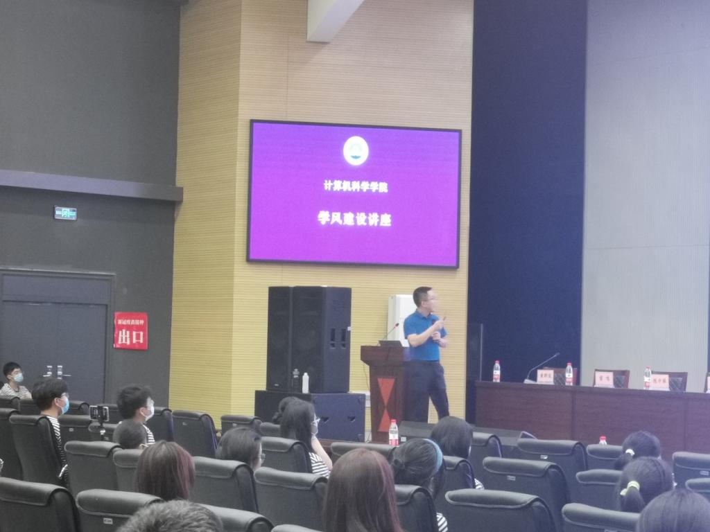 然后,詹炜老师以“爱探究”为主题,严肃强调了综合素质和多面发展的重要性。当谈到本院的本科生导师率领员工们参加学科竞赛,并带动了老员工创新创业项目时,老师慷慨激昂地鼓励员工们:“青年创新蓬勃发展,专业融合应用大有可为。”随后,老师播放了本院已获得的两项顶级赛事互联网国奖的参赛和获奖视频,在场的员工们发出了惊讶的感叹,同时一颗颗同样有着创新创业,参与学科竞赛的萌芽由此发根发芽。