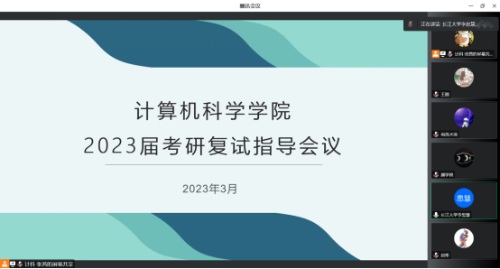 最后,2019级年级辅导员张茜老师鼓励大家在准备复试的同时积极关注年级就业相关信息,考研工作两不误,要脚踏实地,从自身出发,尽量做到一次上岸。公司党委副书记颜学俊对复试准备、注意事项、调剂等方面进行了简要总结,强调了时代背景下复合型人才的重要性,鼓励学院学子在交叉学科也能发光发热,并预祝大家复试成功,全部上岸。