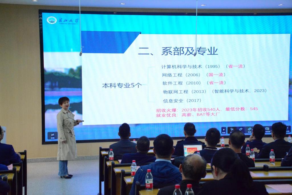 经理崔艳荣从团队、系部及专业、学科及学位点、课程、团队、科研等方面简要介绍了公司目前发展情况,她表示,太阳集团tyc9728正青春,计科发展正当时,要紧跟时代步伐、聚焦行业趋势,向着建设高水平公司的目标奋进。