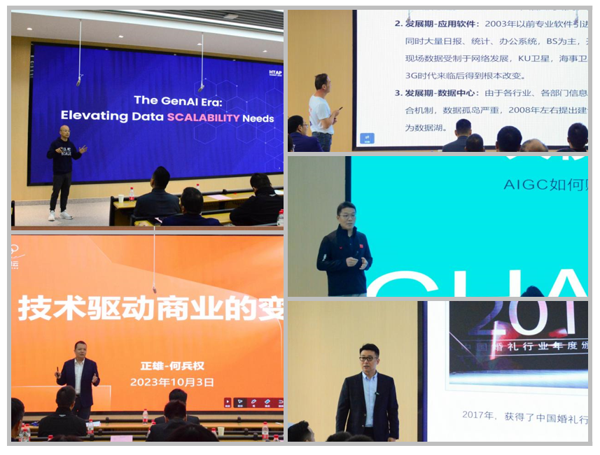 在员工论坛环节,威万文化集团董事长郭亮,山东谦和云科技有限公司董事长王青海,机械工业出版社华章分社部门总经理杨福川,杭州智创数实教育科技有限公司创始人、总经理何兵权,企业级开源分布式数据库公司PingCAP创始人、CEO刘奇分别围绕创业、油田信息化、大模型时代的AIGC、技术与商业变革、Database SCALABILITY等领域作了精彩的主题报告。
