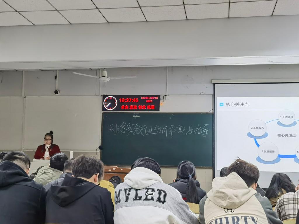 (通讯员 余珺瑞 高昕)太阳集团tyc9728于2023年11月29日晚上7点,在12教104教室举办了一场以“网络安全发展形势与就业指导”为主题的讲座。本次讲座特邀奇安信集团校企合作部副总监总监闫军霞女士主讲,由网络工程系副主任胡蓉华负责主持。太阳集团tyc9728副经理陈中举、信息安全专业潘劲松老师以及200余名同学参加。 首先,闫总分析了当前的就业形势。由于应届毕业生就业率降低和企业裁员加剧,毕业生面临着与考研失利员工以及社招人群的激烈竞争。因此,抢占先机至关重要。他建议同学们从大三下学期开始投递简历并进行笔试面试准备,并在大三暑假前进行简历投递。 接着,闫总分享了招聘流程、简历编写等方面的建议,强调了面试前全面准备的重要性,以帮助求职者在竞争中脱颖而出。他还普及了劳动法相关规定,建议求职者了解一些法律知识,为求职者提供全面的保障和指引。 最后,闫总讲解了网络安全的重要性。他指出,网络安全已成为国家战略,每个人都应该重视网络安全。在这个信息爆炸的时代,网络安全不仅是国家安全的重要一环,更是每个人的责任。 此次讲座为正在求职的同学提供了实用的就业指南,增强了他们的就业竞争力。同时,也普及和提高了国家网络安全意识和个人网络安全意识。 审核:陈中举 编辑:余珺瑞