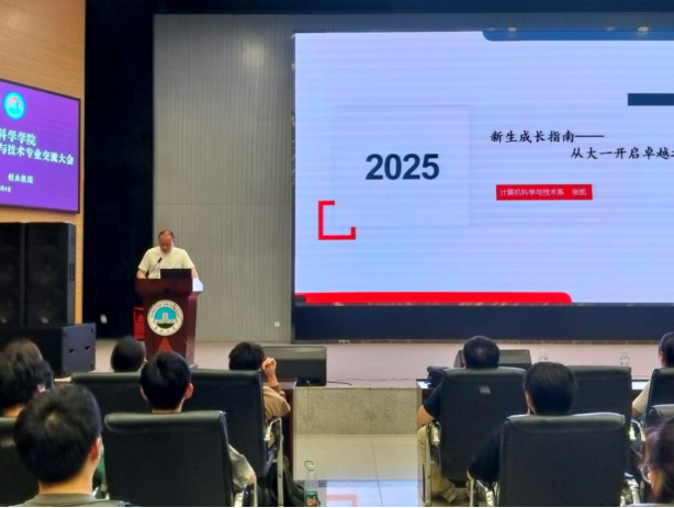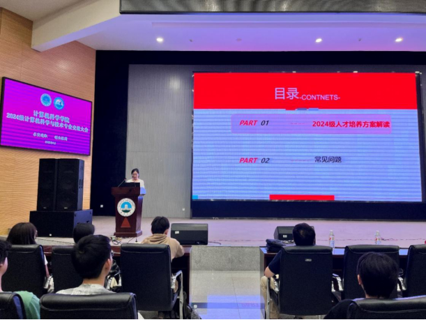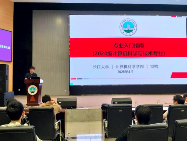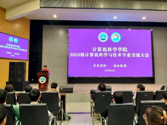 2025年4月28日晚7点至8点30分,太阳集团tyc9728计算机科学与技术专业于农科大楼1058学术报告厅成功举办2024级新生专业交流会。太阳集团tyc9728经理崔艳荣,经理助理兼计算机科学与技术系主任雷鸣,副主任张凯、代江华,新引进的博士后张玉繁,学工办老师蒋代运,为2024级计科专业全体230名同学介绍专业发展与成长规划,会议由雷鸣老师主持。