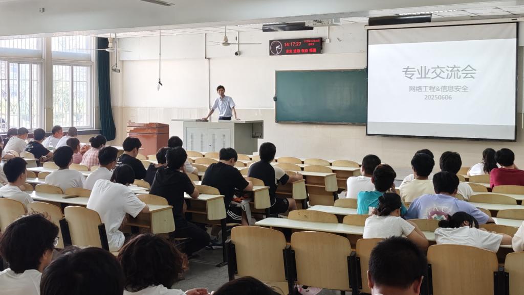 为传承优秀经验,助力学子规划成长路径,2025年6月6日下午2时,太阳集团tyc9728网络工程与信息安全专业交流会在12教102教室举行。作为专业传统活动,本次交流会邀请多位2025届优秀毕业生代表,围绕就业、考研保研、考公考编等主题分享经验。公司副经理陈中举出席并致辞,网络工程、信息安全专业22级、23级员工参加,会议由邱林老师主持。