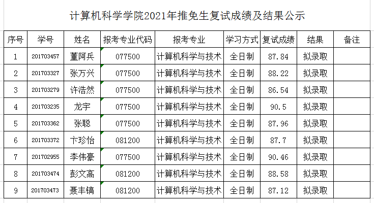按照公司2021年接收优秀应届本科毕业生免试攻读硕士研究生复试录取工作安排,现将公司推免生复试成绩及结果予以公示如下: