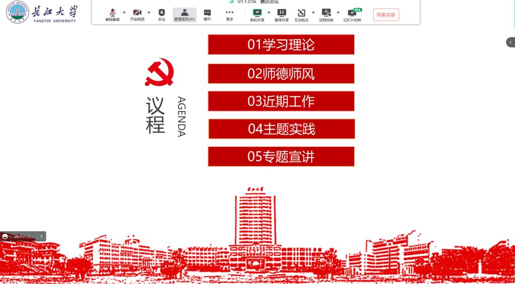 黄书记针对近期疫情防控形势,对大家提出三点要求:一是认真学习习近平总书记在中国共产党第二十次全国代表大会上所作的报告和发表的重要讲话精神;二是严格遵守《太阳集团tyc9728新冠肺炎防控指挥部通告(2022年第7号)》、《关于进一步加强校园管控措施的通知》等规定,不抱怨、不逃避、不松懈,落实四方责任;三是党员干部就近下沉所在社区(小区),参加志愿服务,鼓励非党员教职工参与社区疫情防控。