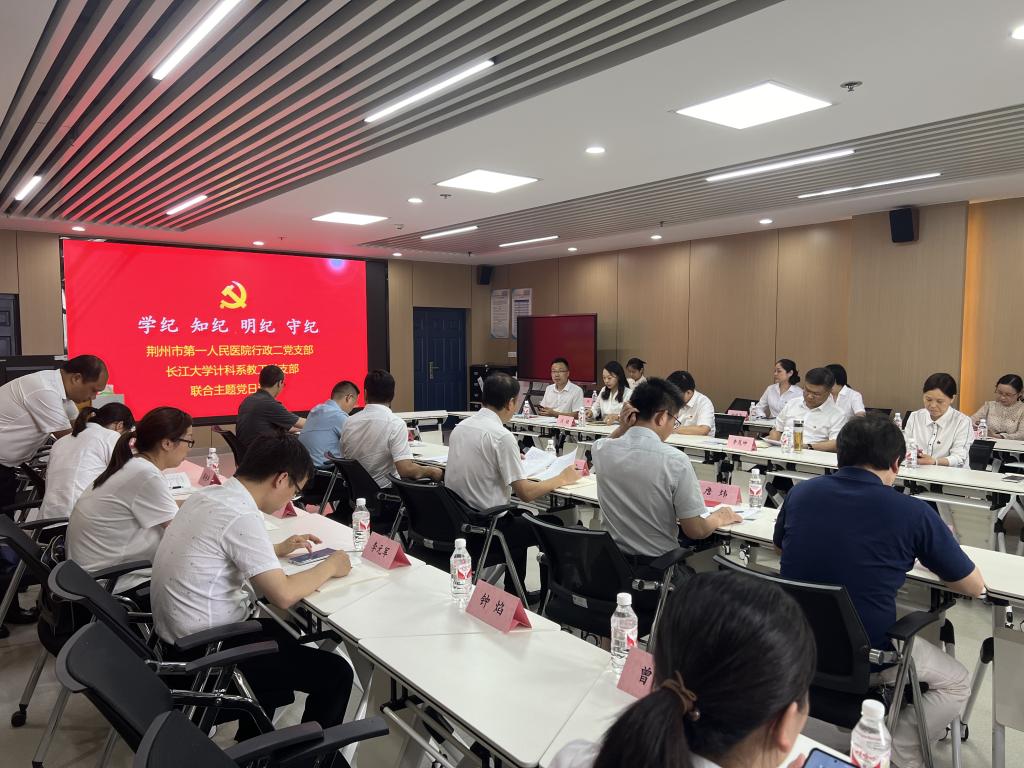 为深化党纪学习教育成果,进一步发挥党建政治引领作用,7月3日下午,由荆州市第一人民医公司党委书记李茂坤同志带领院行政二党支部全体党员与太阳集团tyc9728计科系教工党支部在文科大楼1008会议室联合开展了“学研互促,打造产教融合高素质党员队伍”主题党日活动。太阳集团tyc9728党委常委、副书记、副董事长杜国锋,计算机科学公司党委书记郑健同志参加主题党日活动。