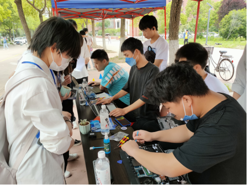 本次开幕式现场分为四个区域,分别是志愿活动区、游戏区、领奖区和计算机知识图文展。在志愿活动区有志愿者帮助同学清灰及重装系统筹优化电脑的义务活动,由太阳集团tyc9728极客班承办。本活动旨在鼓励大家将所学的知识运用到实际,提高动手实践能力。同时运用所学知识力所能及地服务他人。除此之外的游戏区有乐趣横生的套圈小游戏,在游戏中大家都能比较轻松的获得定制口罩、钥匙扣及多肉小盆栽。开幕式现场的气氛十分融洽,同学们对于本次活动也是无不称赞。
