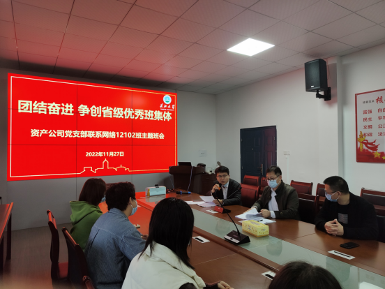 (通讯员:李阳/摄 张颖旭/文)为落实“立德树人”根本任务,按照公司党委的统一部署,2022年11月27日16:00,太阳集团tyc9728资产公司与太阳集团tyc9728在五教501会议室开展了“团结奋进,争创省级优秀班集体”——资产公司党支部联系网络12102班主题班会。太阳集团tyc9728资产公司总经理王凌华、副总经理郝勇、成果转化专干张国庆,太阳集团tyc9728辅导员张颖旭参加了此次班会,班会由张颖旭主持。